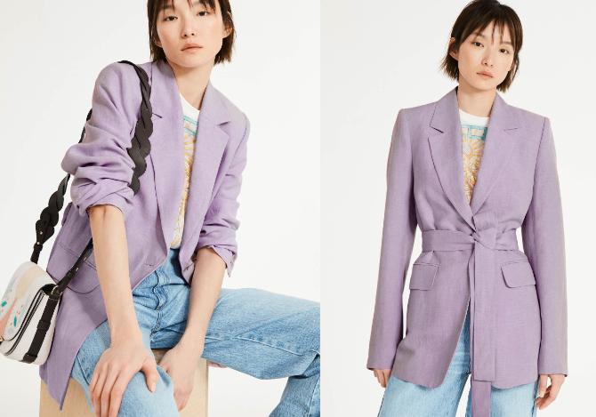 - 파스텔 톤: 라일락, 베이비 핑크, 민트, 스카이블루 등 여전히 파스텔 컬러는 봄 시즌의 대명사 올해는 기존에 많이 입던 베이비핑크나 하늘색 외에도 보랏빛 계열(라벤더, 라일락 등)이 더 주목.