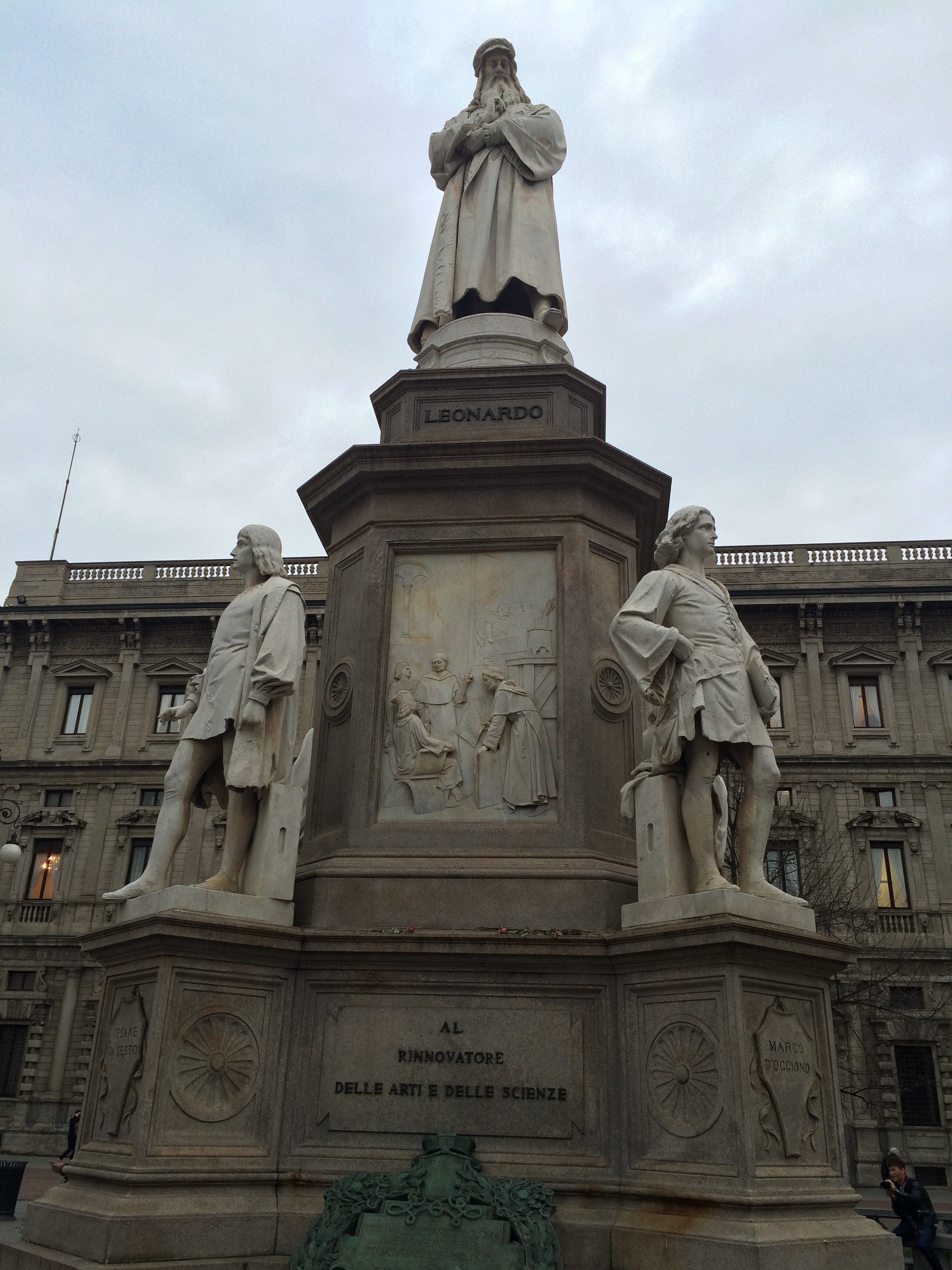 광장 가운데 레오나르도 다빈치 동상이 있습니다.
