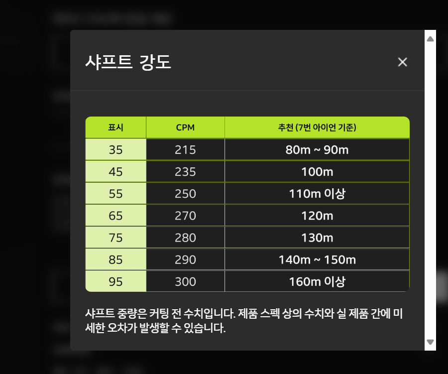 샤프트 강도 가이드를 클릭하니 아래와 같이 되어있었어요.